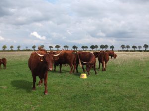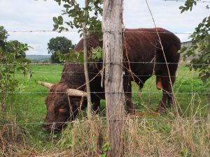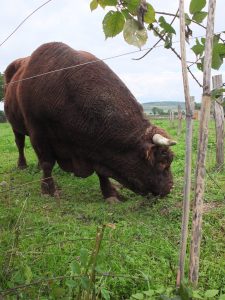 Belle gamme de produits à Pochey : des œufs bio en libre-service (à pocher mais pas seulement !), de la farine et de la viande de vache Salers. Tout ça élevé dans les beaux prés de Julien Dufour, qui offre à ses bêtes beaucoup de place pour gambader joyeusement comme les Salers savent le faire, et pour toujours trouver une belle herbe fraîche à croquer.