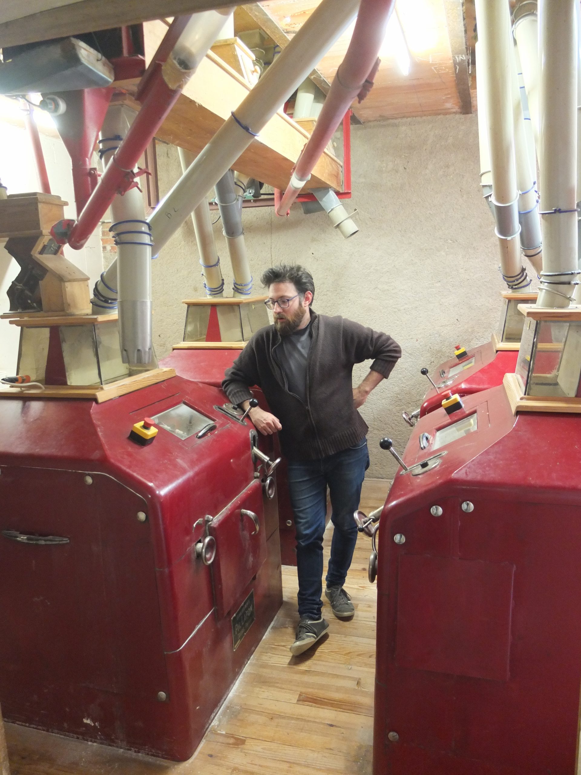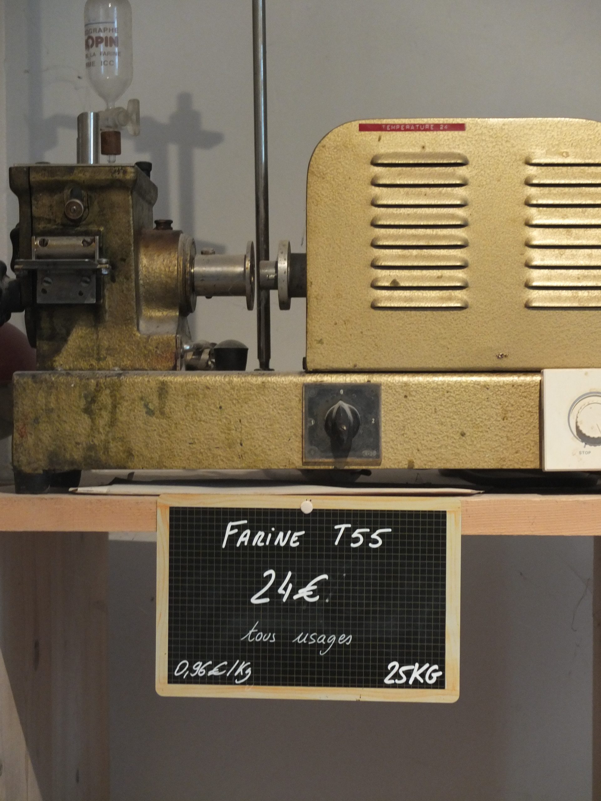 Deux jeunes hommes pleins de fougue viennent de sauver le vieux moulin et sa fabrique à farine. L'ancien meunier, M. Lallemant leur a laissé les clefs et peut enfin aller dormir sur ses deux oreilles. Aurélien et Olivier prennent le relais et nous proposent une grande gamme de farines à trouver sur place en libre-service dans leur nouvelle boutique au pied du moulin.